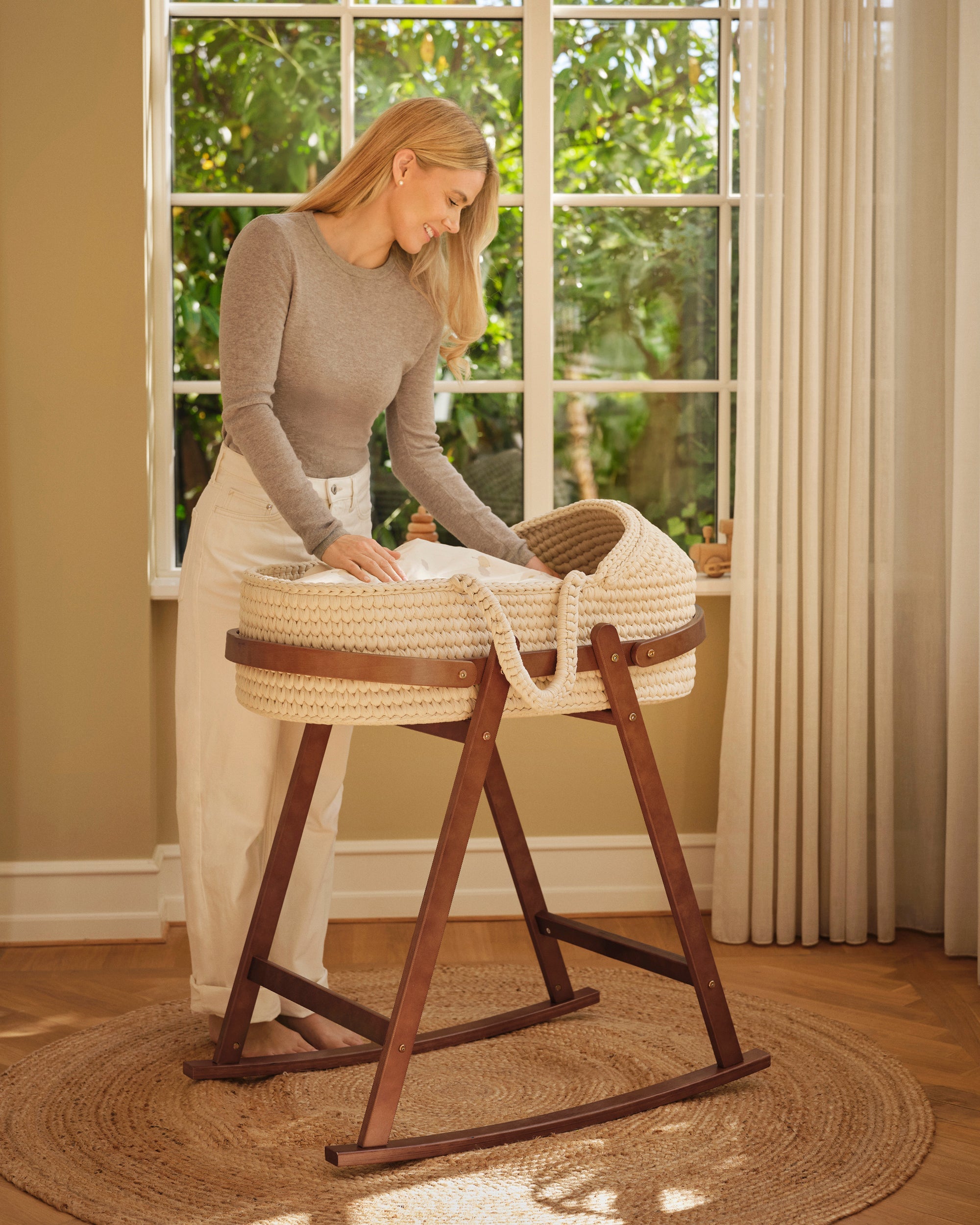 Kombinera den med vårt stativ för en komplett lösning och den ultimata sovplatsen för din baby. När barnet växer ur korgen är den enkel att förvara och kan få nytt liv på många fina olika sätt. Tillverkad med omsorg och skickligt hantverk är den skapad för att vara säker, hållbar och en kär del av din föräldraresa.