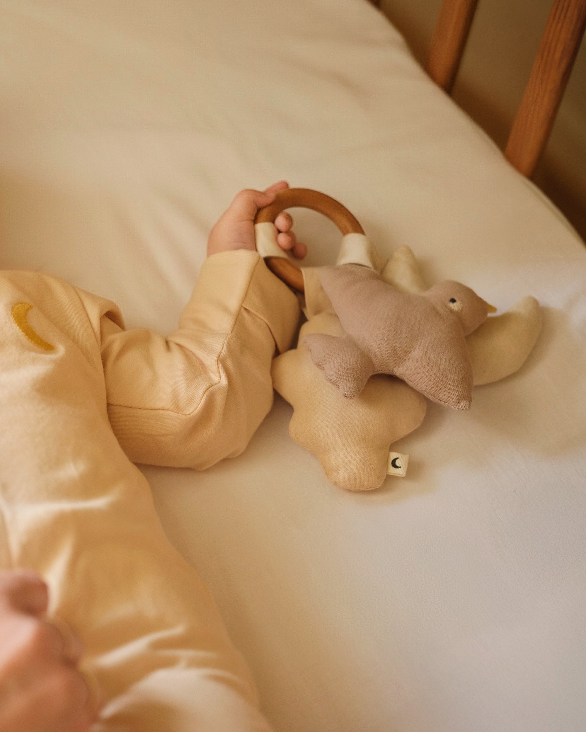 Varje karaktär är säkert fastsatt på en barnsäker ring tillverkad av vackert valnötsträ, vilket skapar en snygg och tröstande leksak för ditt lilla barn. Denna nattleksak är utformad för att ge tröst och lugna och ger en lugnande sensorisk upplevelse som förbättrar ritualerna vid läggdags och ger trygghet under tupplurar.