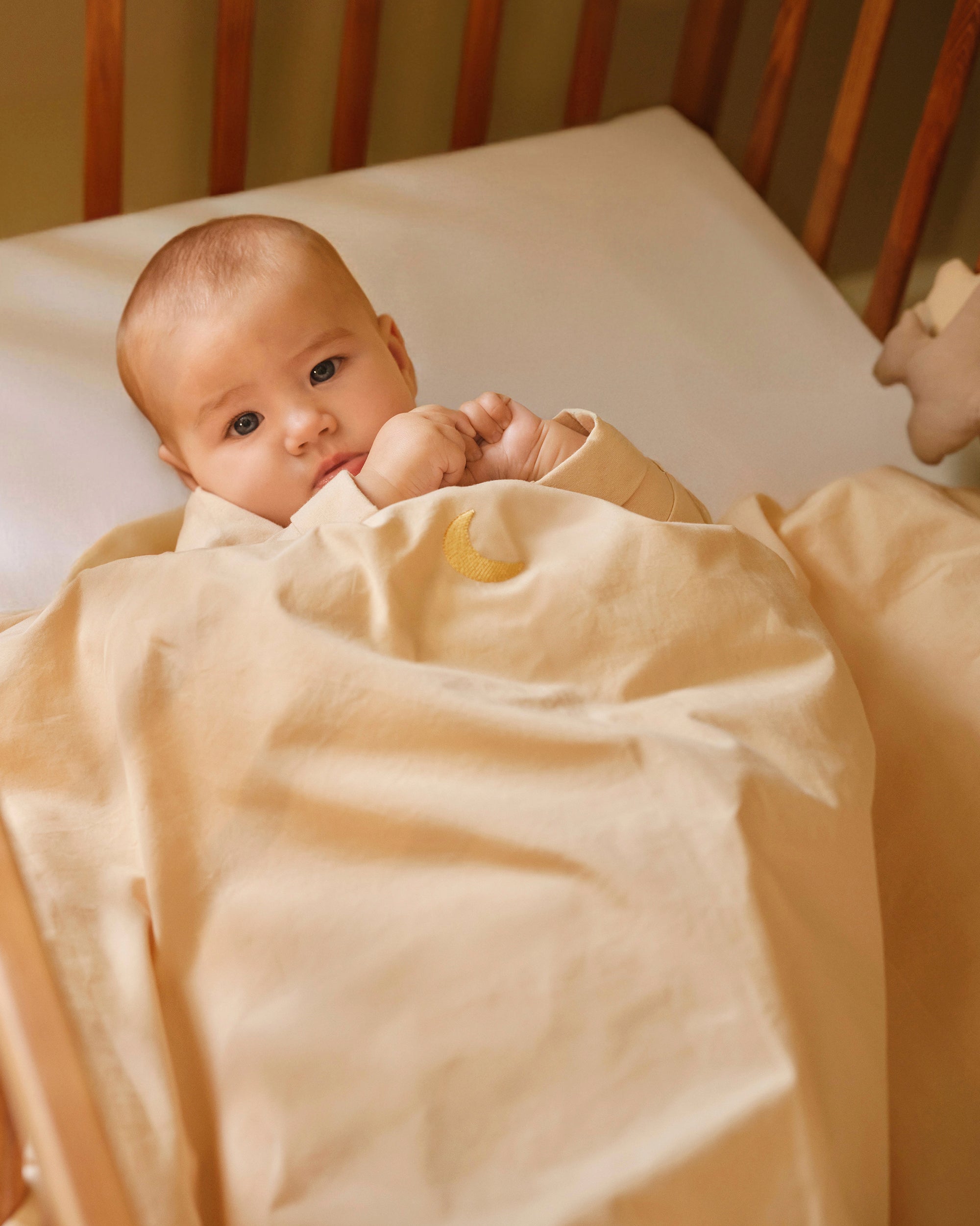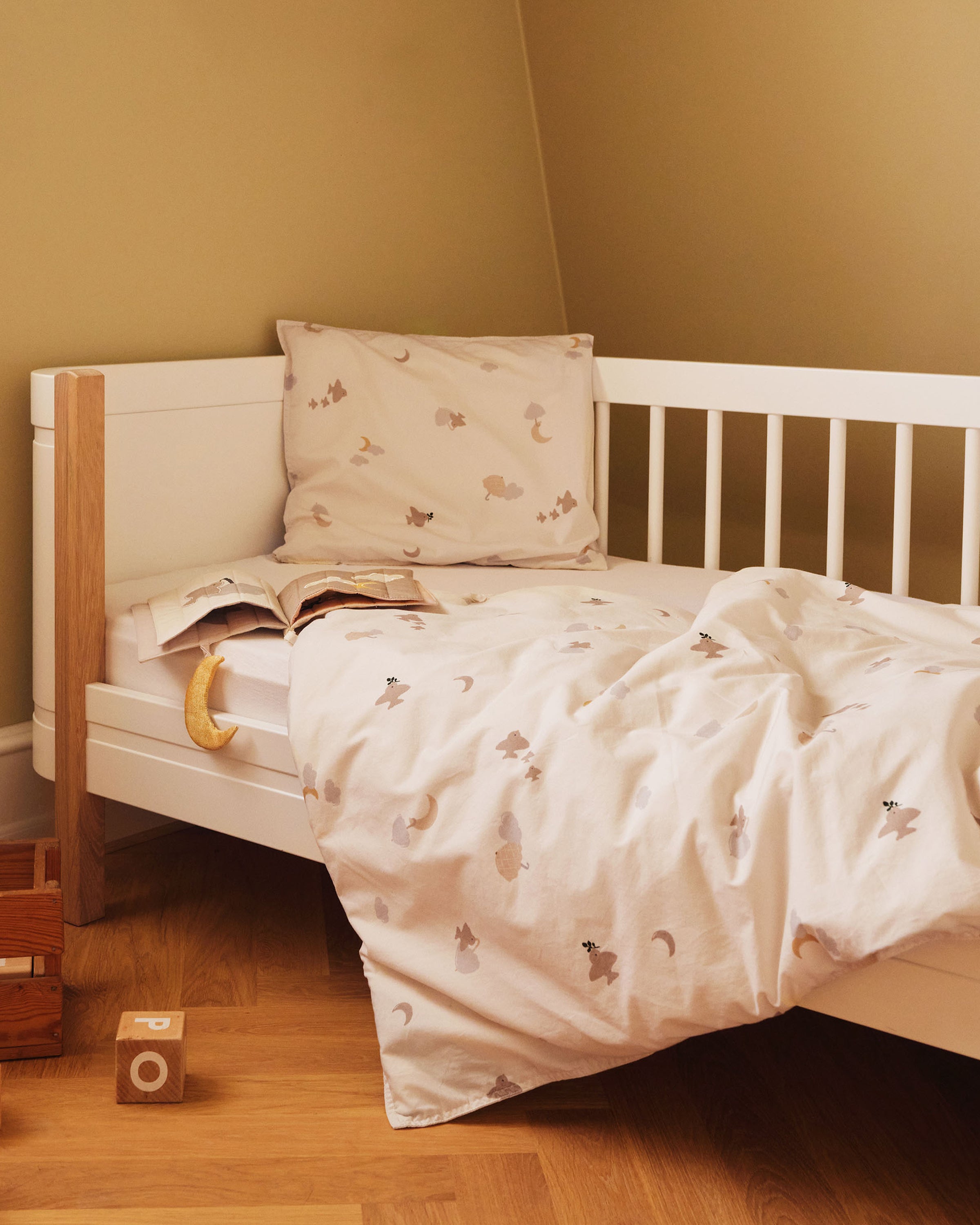 Dessa mjuka sängkläder inbjuder din lilla till gosiga och sömniga stunder. Tillverkad av ekologiska och naturliga material i en tidlös design för din bebis härligaste sömn.
